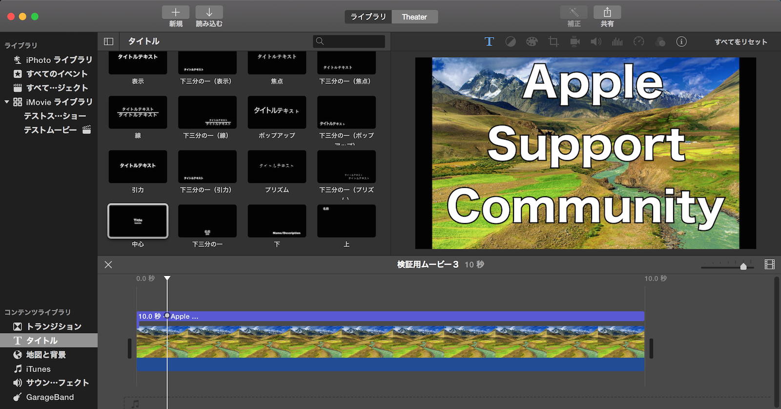 「iMovie」には「アルファベットの小文字を入力出来るタイトル」と「アルファベットの大文字専用のタイトル」