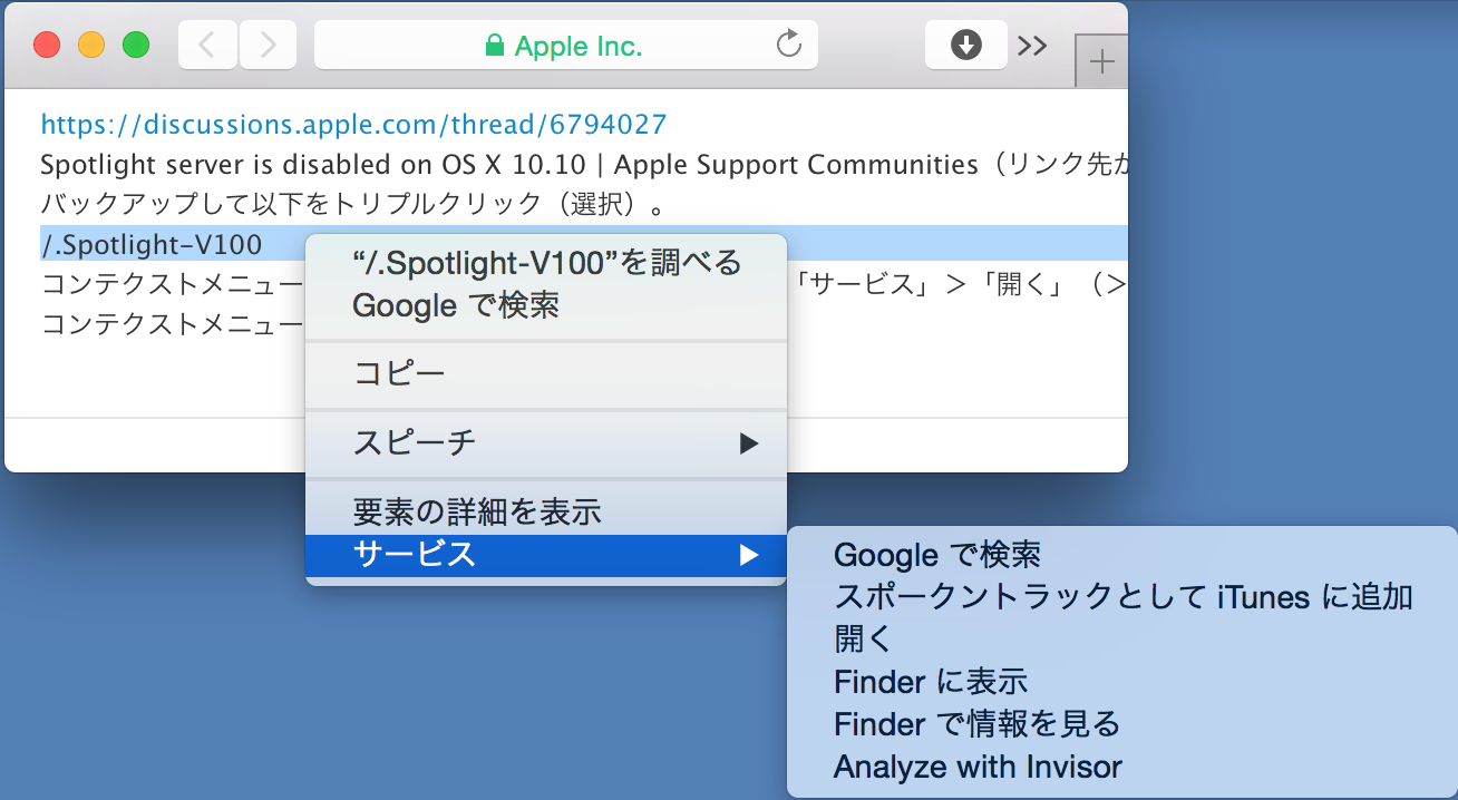 Lionを使っている時にmdutil off /でSpotlight検索を出来ないように変更し問題なく使っていたのですが、YosemiteにアップデートしMail.appの検索機能が働かないことに気づきました。もしや原因がSpotlightにあるのでは。と思って設定をやり直したりしたのですが・・・