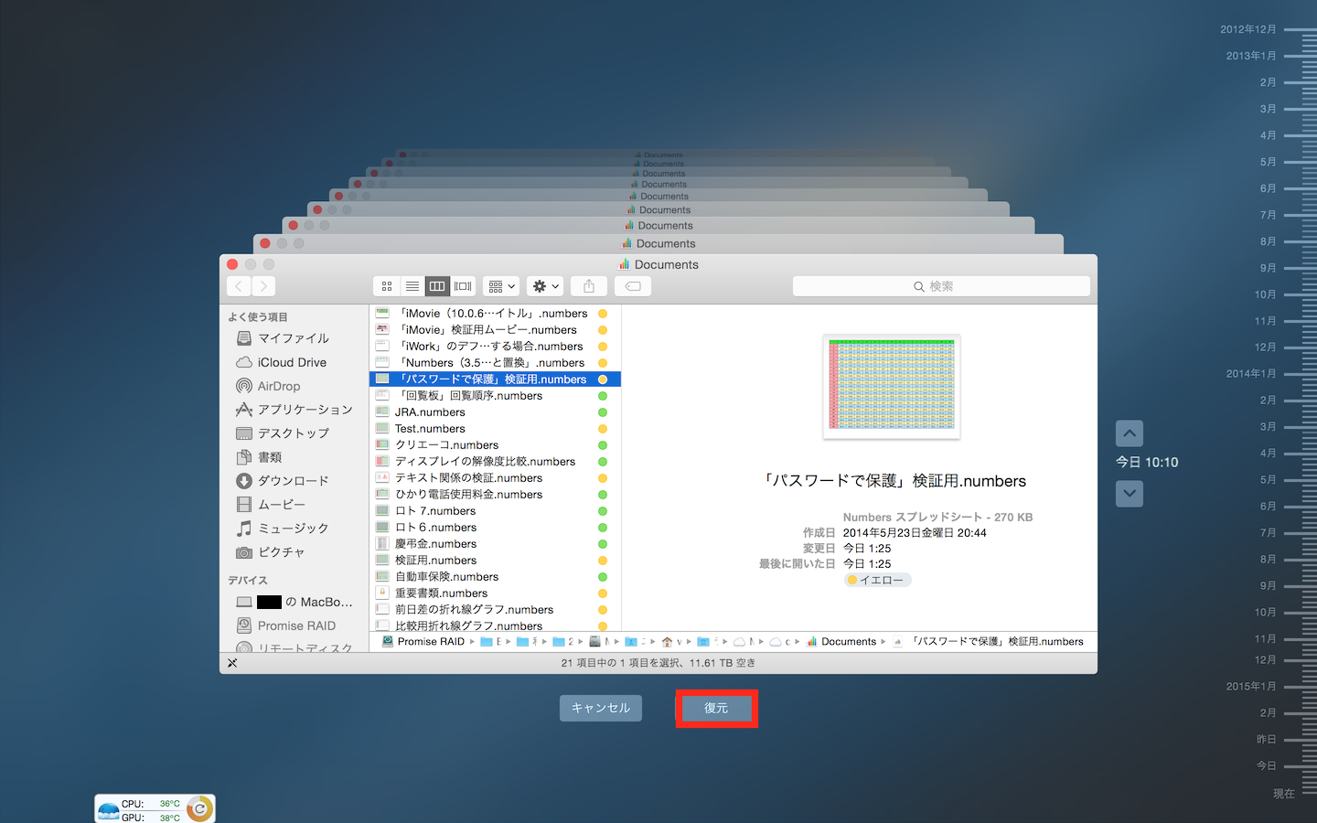 「Time Machine」バックアップが無いのは痛いですね。