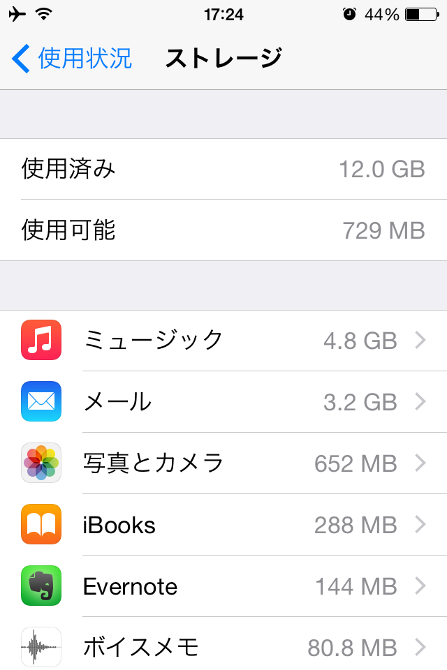確認は、設定>一般>使用状況>ストーレージを管理にて使用容量を確認しました。