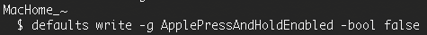 defaults write -g ApplePressAndHoldEnabled -bool false