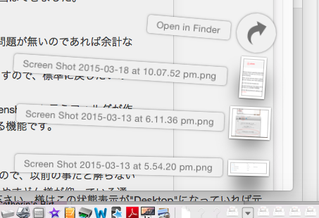 後、schreenshotのFileが何故かdockにできていて、このfileの数がscreenshotを取るたびに増える。こわ。