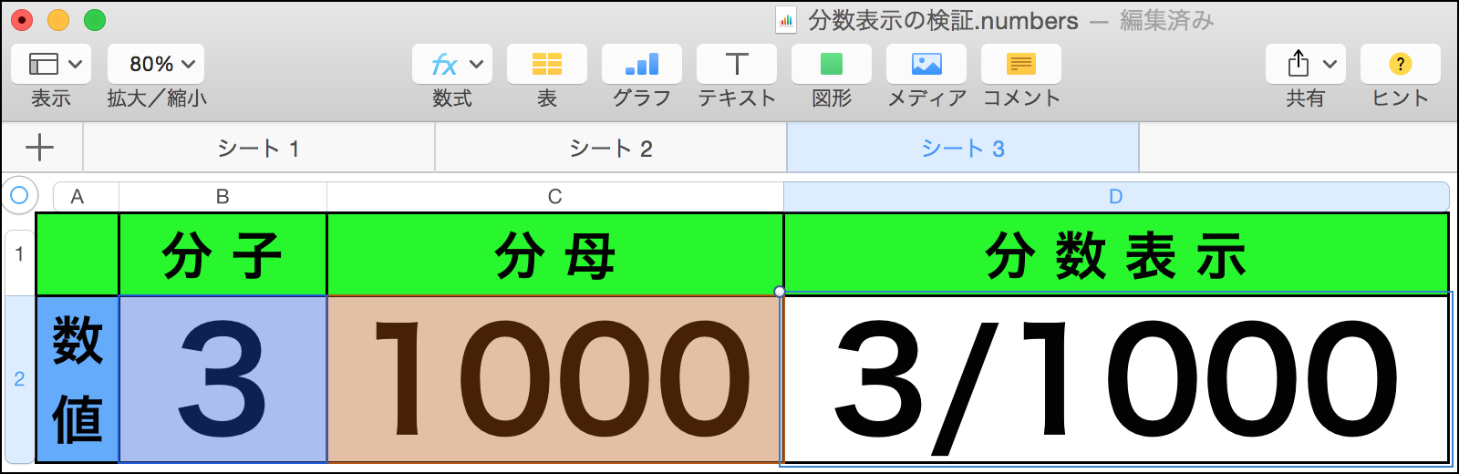 「分数」の桁数表示が 3 桁までなのは、「Numbers」の仕様ですので、どうしようも無いと思います。