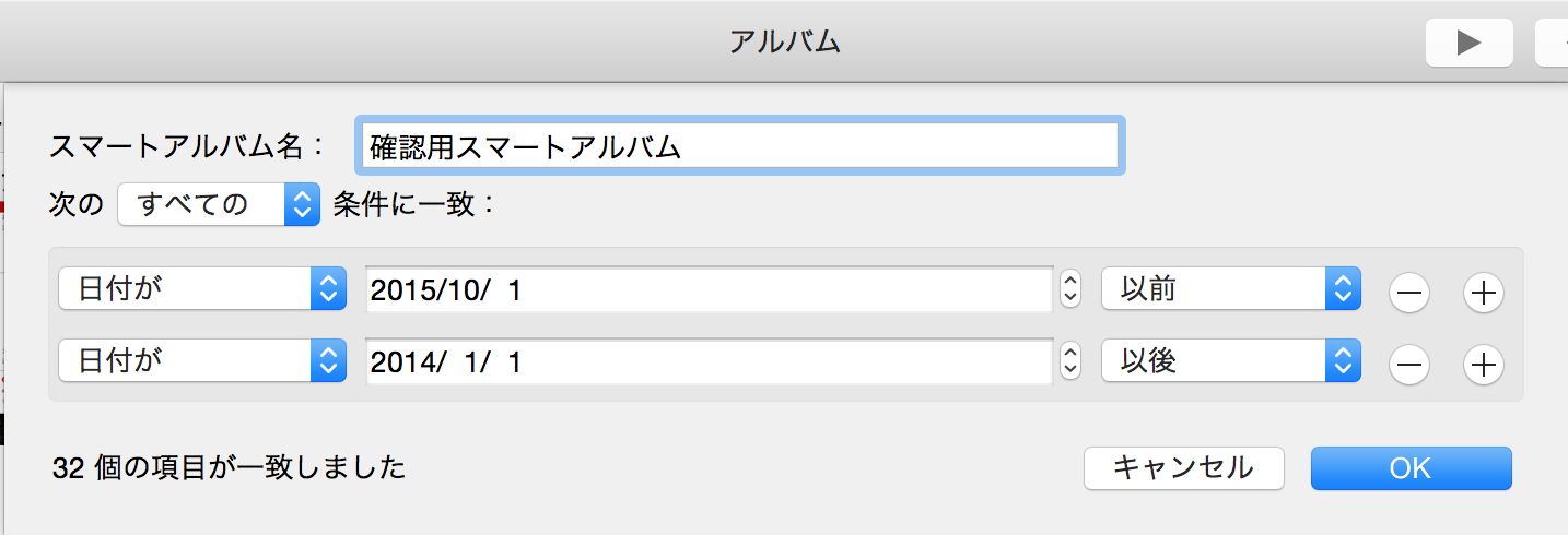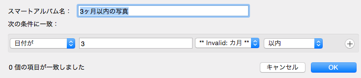 スマートアルバムで日付の範囲を指定するときに、終了日を10月1日以降にセットすると、該当する写真の枚数がゼロになってしまいます。(9月30日までならOK)