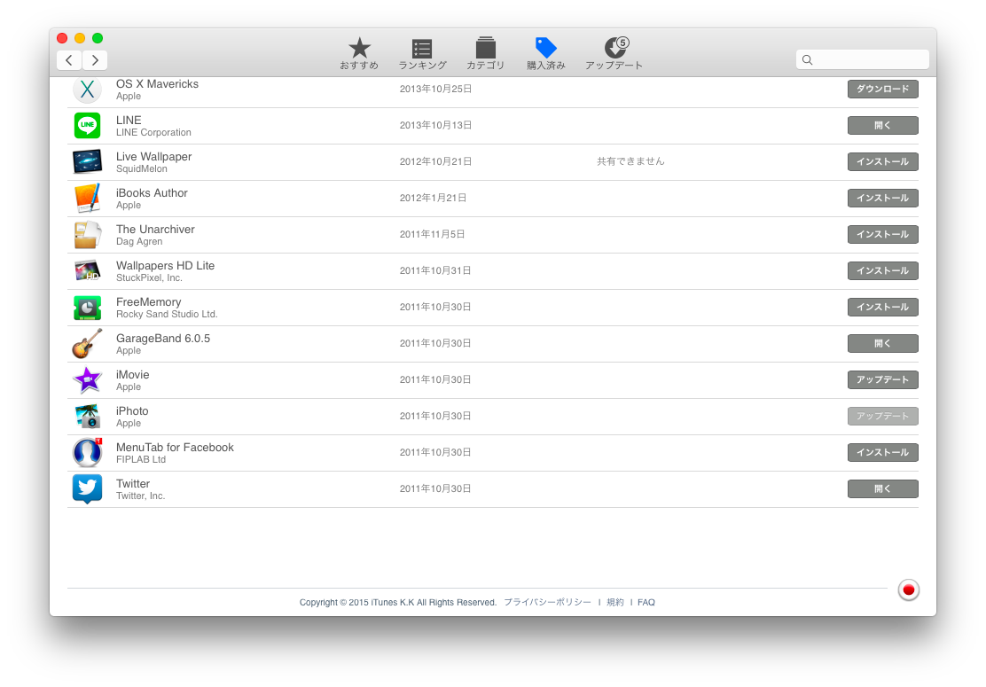 (「iPhoto(9.6.1)」は既に Mac App Store から撤去されていますが、「iMovie」は最新の「iMovie(10.0.7)」に