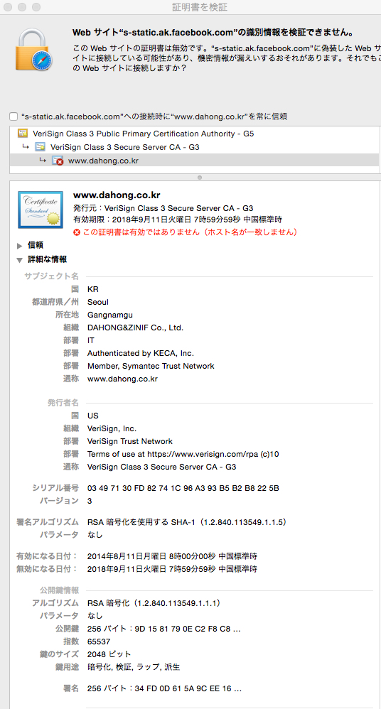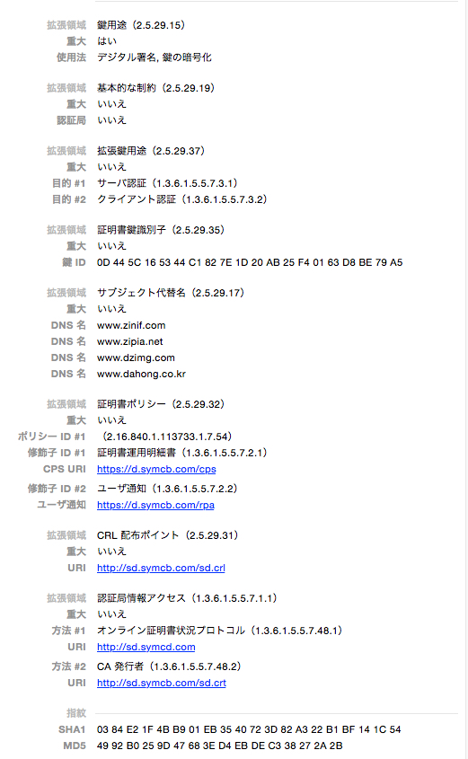 証明書を表示クリックしたら下記内容です。