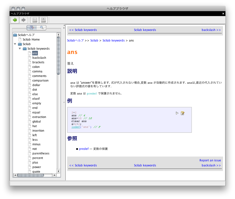 あるいは、下のリンク先からヘルプファイル (scilab_ja_JP_help.jar) をダウンロードして jar ファイルを展開して HTML ファイルを読むとか。