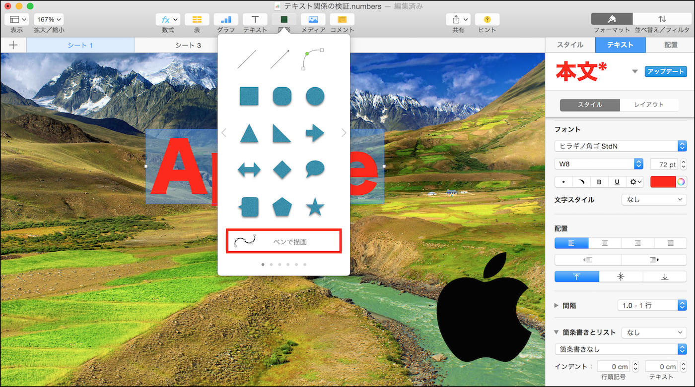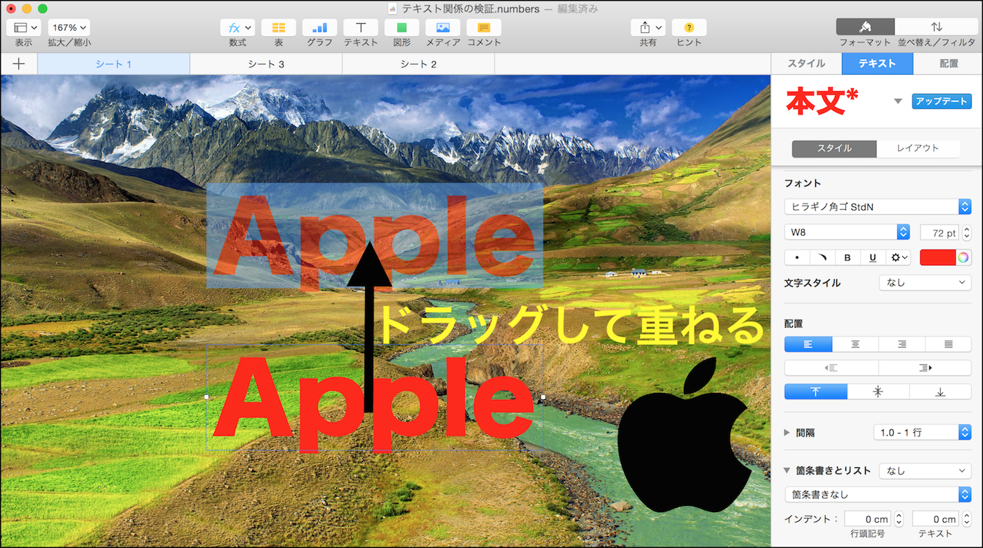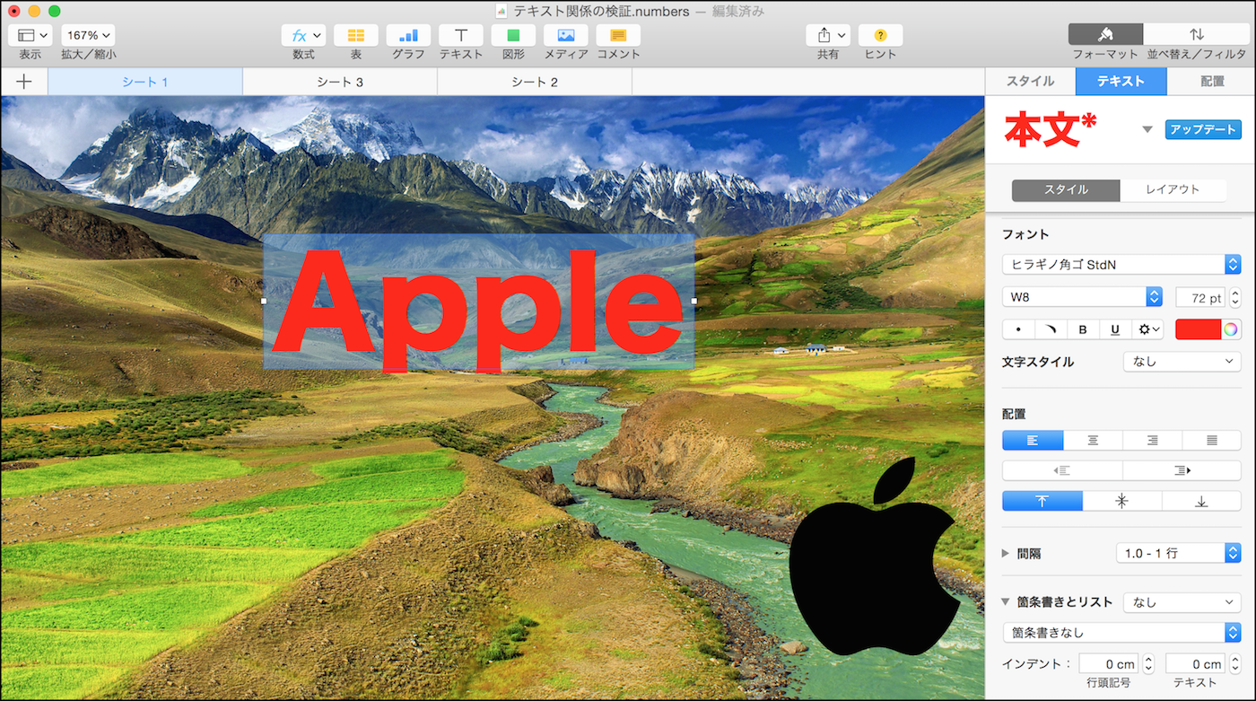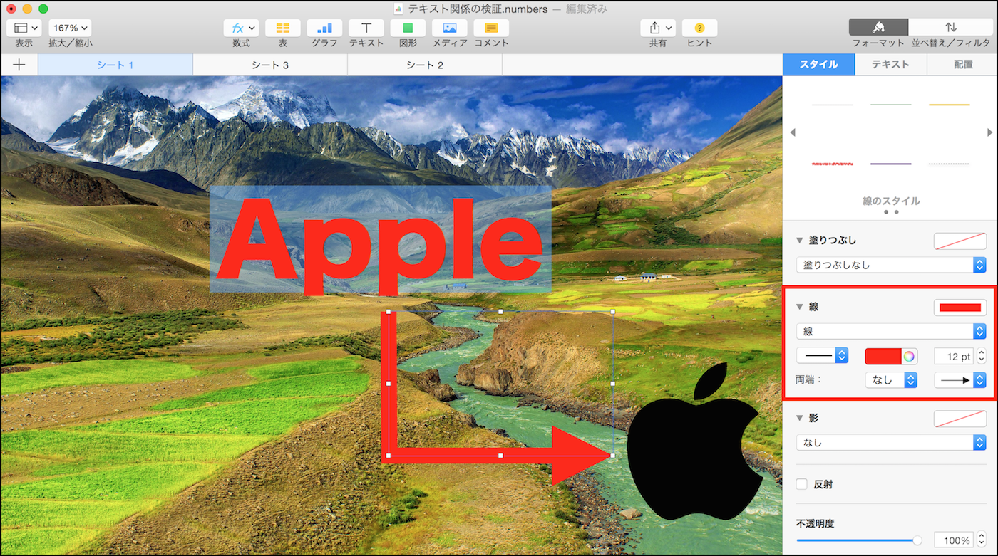 私は「Keynote」を使用していないので、「Numbers」での検証ですが、