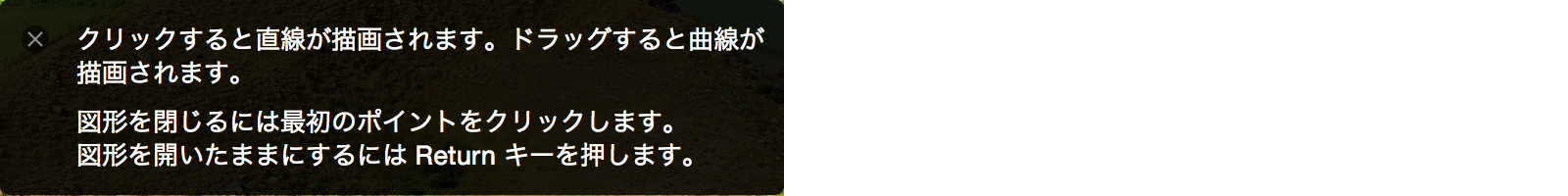 始点でクリック > L字の折れ点でクリック > 終点でクリック >「return」キーで図形を開いたままにします。