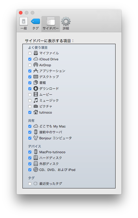 OS X Yosemite 10.10.3 で外付けHDDが認識されるが、Finderのコンピュータやサイドバーに表示されない