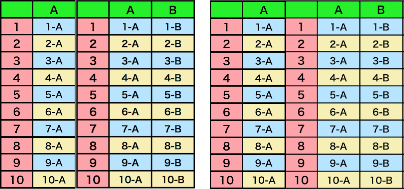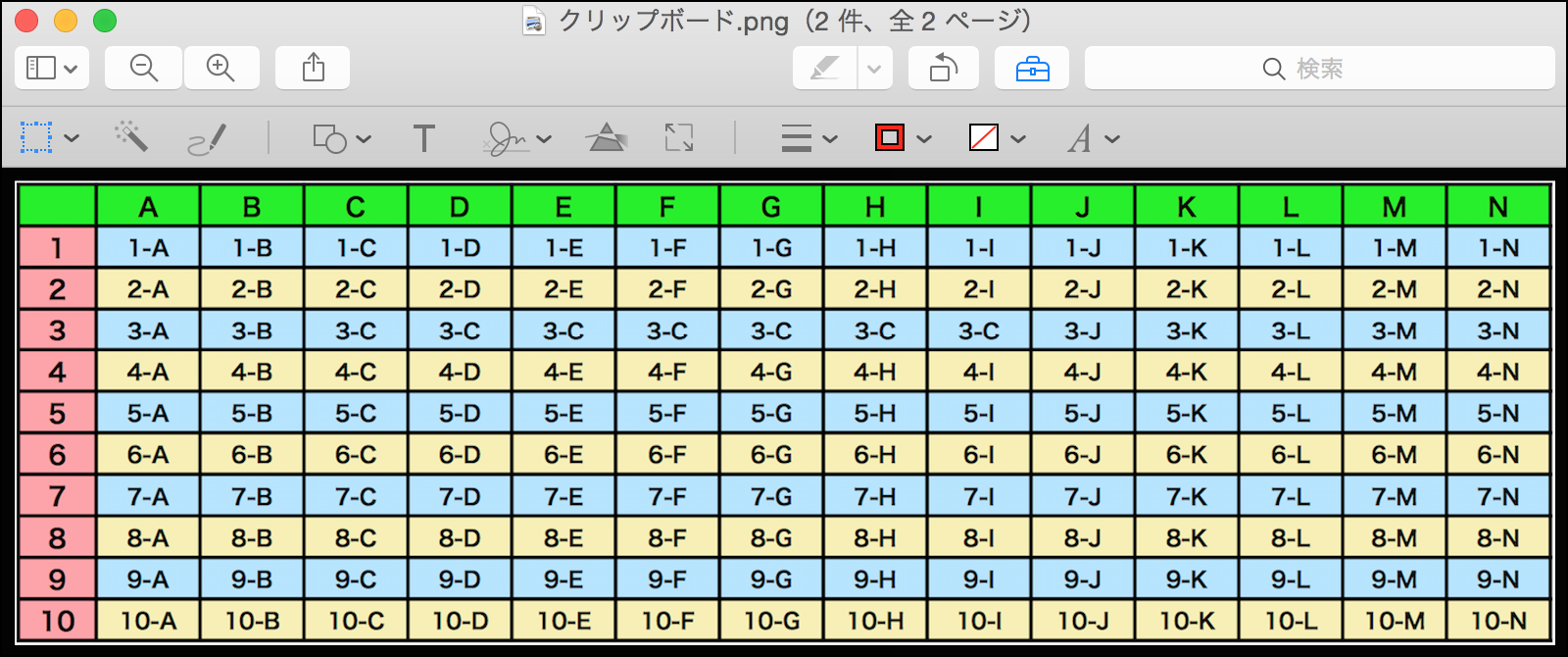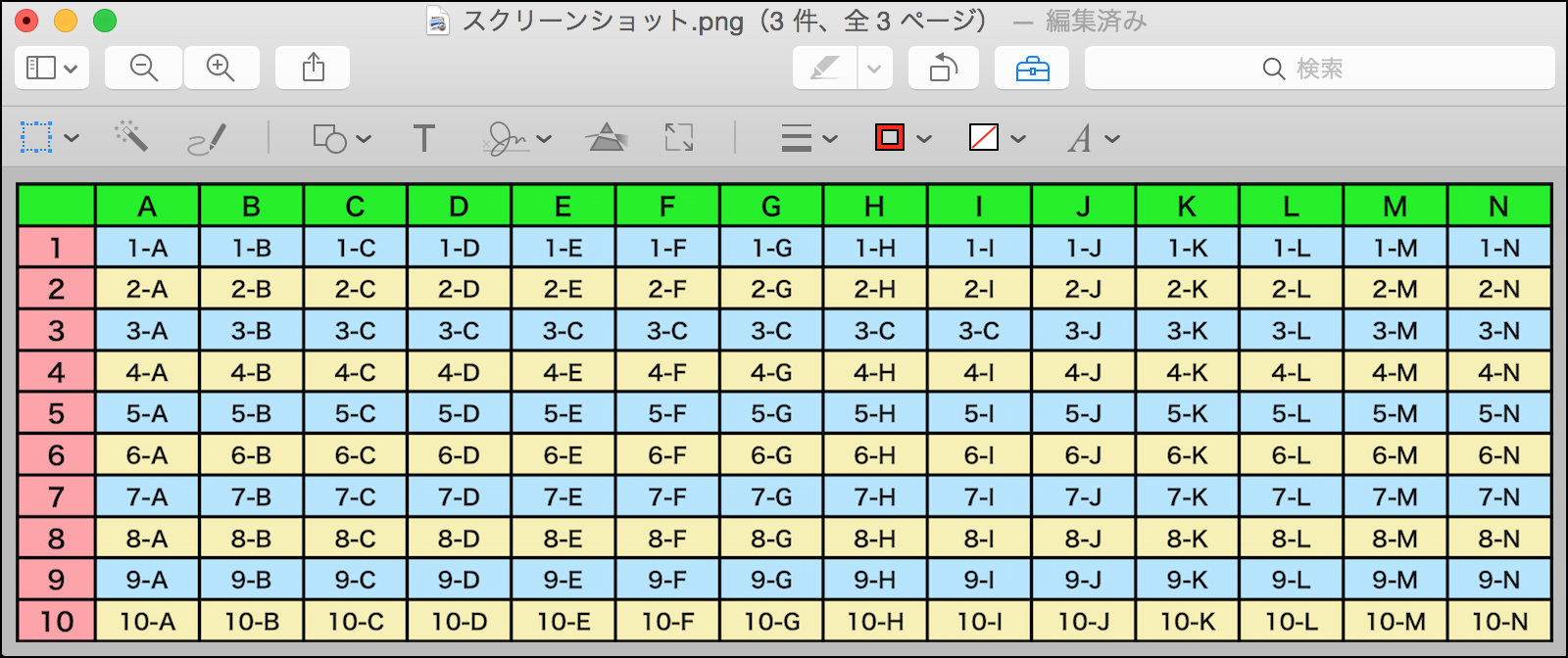 ※ 各々の画像の左側が、実際の「Numbers(3.5.3)」の表です。