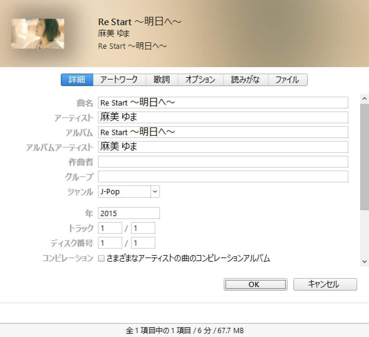 と、そこまでは良いのですが、そのビデオが音楽ビデオの場合に、楽曲を右クリック→プロパティ→オプションタブを選択し、「メディアの種類」を「ミュージックビデオ」に修正し、しかるべきアーティスト名や曲名を入力すると、ちゃんと "Music"フォルダの各アーティスト名フォルダ内にファイルが移動されていました。以前は。