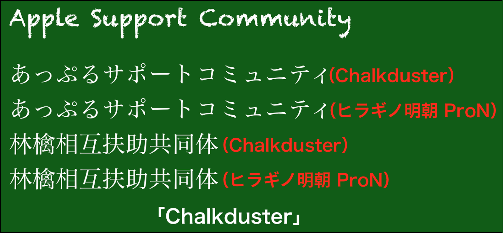 デフォルトでインストールされている「Chalkboard」「Chalkboard SE」「Chalkduster」等の場合、日本語には対応して