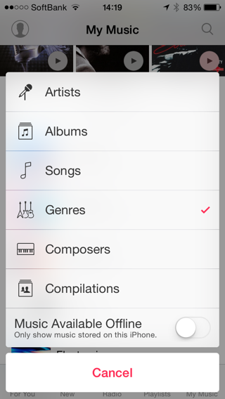 My music内にてジャンル毎のシャッフル再生をする方法が分かりません。