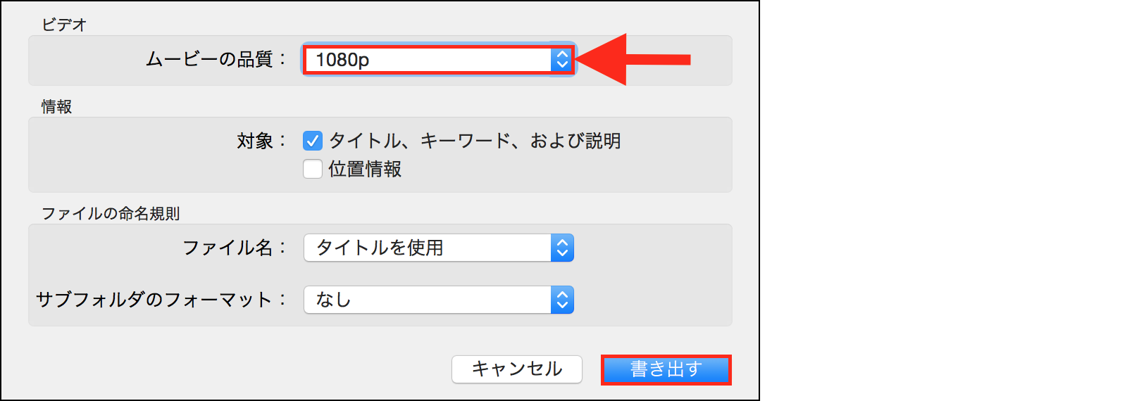 Yosemiteあたりから"iPhoto"の代わりに導入された"写真"にほとんどの動画ファイルを保存していたので、HDDに移す方法として "写真"→デスクトップに一旦コピー→HDD というようにしようとしました。