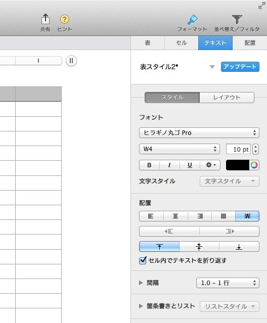 2)Numbers.appで使用されている幾つかのオブジェクトにはカスタムスタイルを作成することができます。 一度、スタイルを作成すれば、繰り返し適用できますので、フォントなどを統一することができますね。 詳しくはヘルプを参照するとよいと思います。