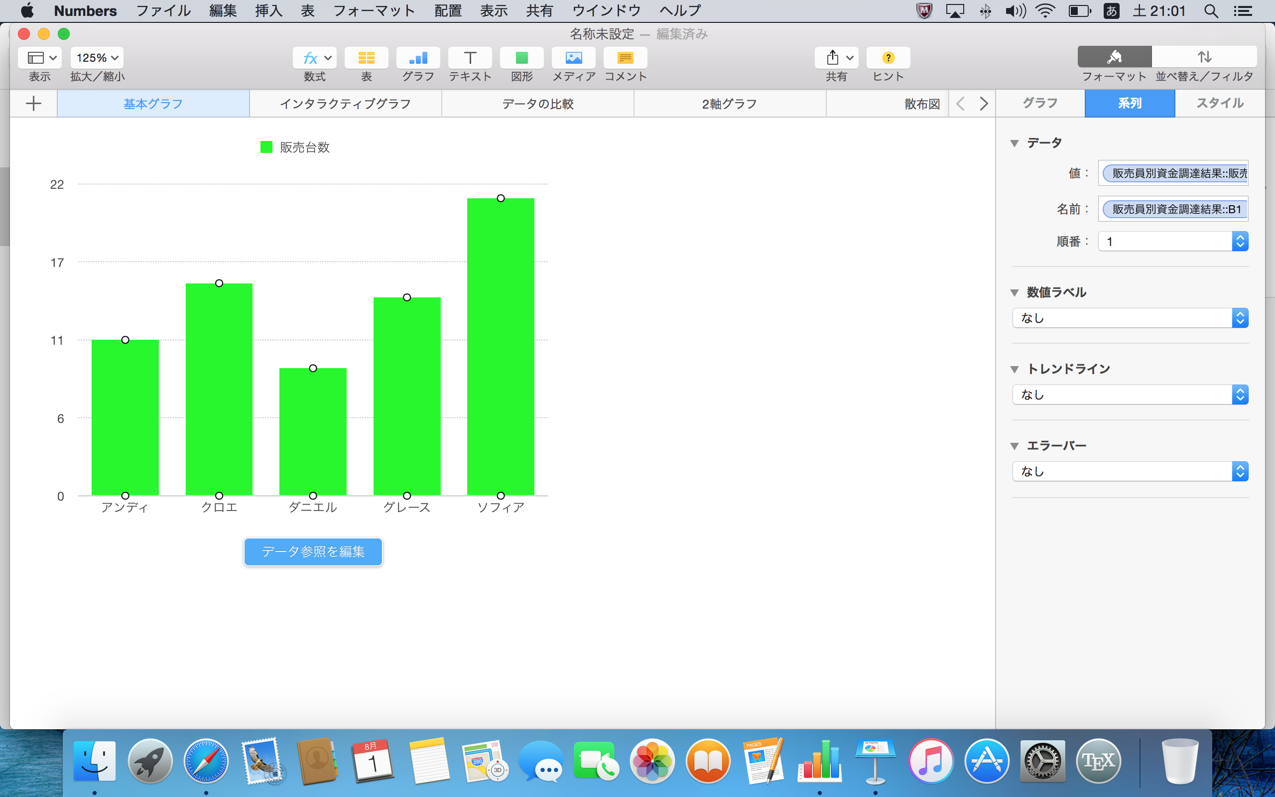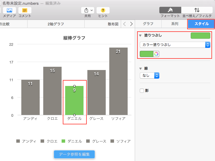 → グラフのデータ参照を変更する - Numbers ヘルプ