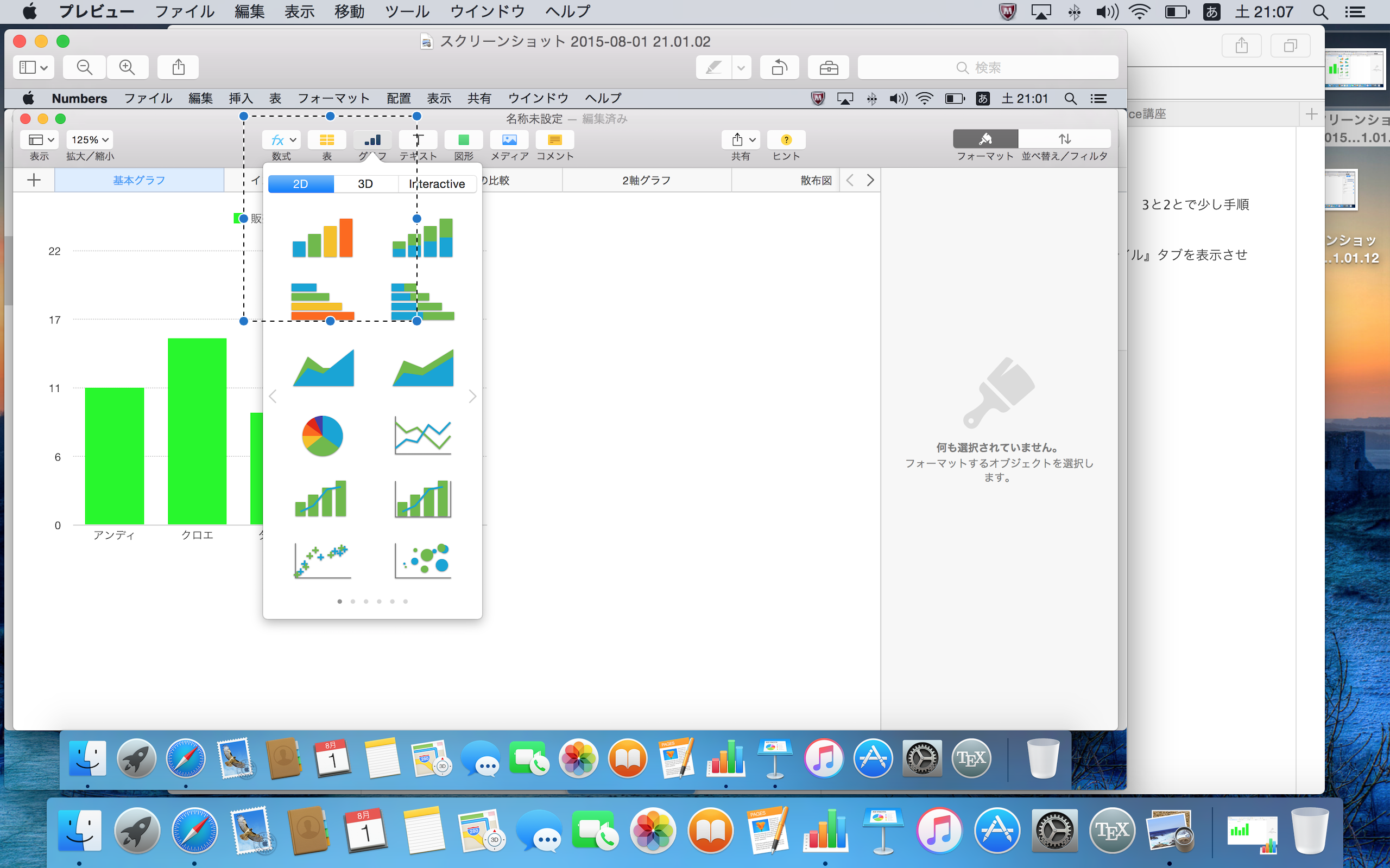 あるいは、Excelで可能な場合は、そのグラフを画像形式で保存したものを、Keynote.appに貼り付ける方法が簡単そうです。