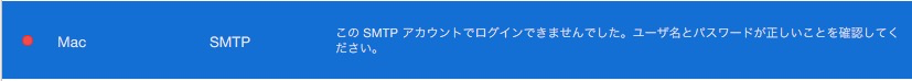 指示に従い、MacのアカウントのSSLのチェックを外すと、「このSMTPにログインできませんでした。ユーザー名とパスワードがただしいことを書くにいしてください」とでます。