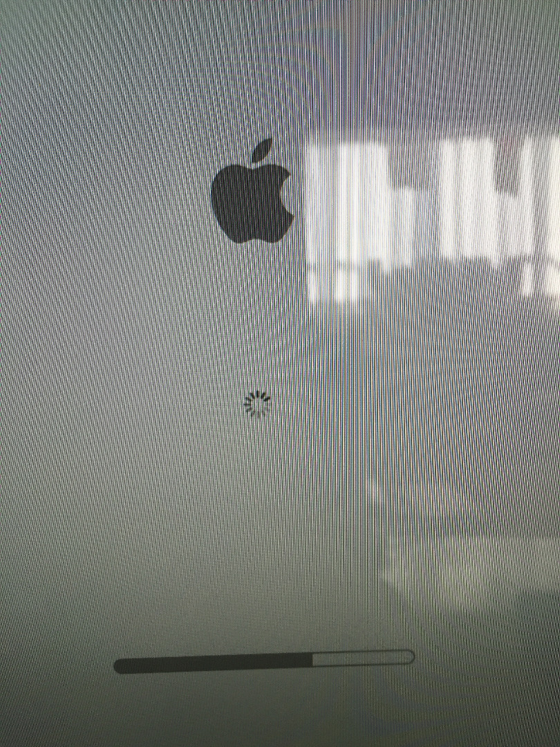 電源ボタンを押す→ジャーンの音→添付画面→約30分後起動