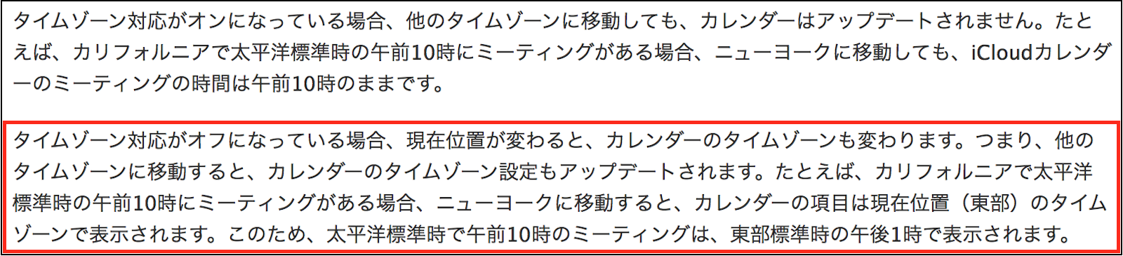 Mac OS X Yosemite 10.10.5のカレンダーの時差の取り扱いがわかりません。
