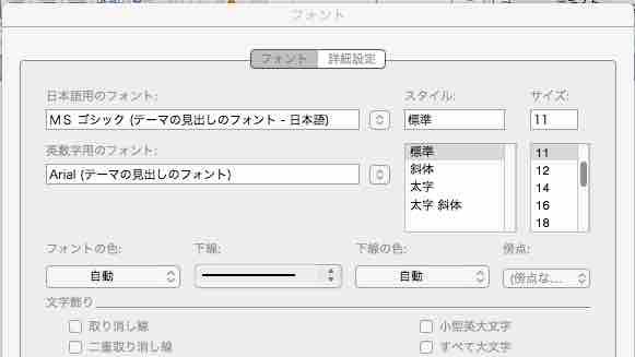 yosemiteでoffice2011を使用中。日本語入力時の下線の色、太さ、濃さなどを変えたい。