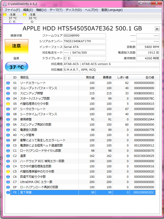 ただ、代替処理済みのセクタだけでなく、代替処理保留中のセクタもある訳ですから、徐々に進んでいる故障の予兆がある以上、気をつけて運用したほうが良いのは確かです。