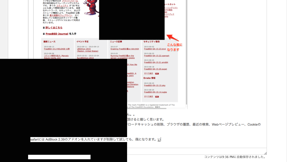 偶になのですが safariで黒い四角が表示されます。Yosemite 10.10.5になってからだと思います。