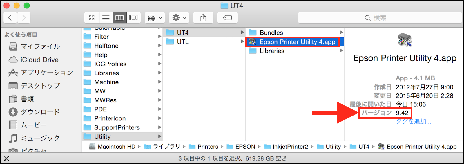 「UT4」フォルダの中に有る「Printer Utility 4.app」のバージョンは、どの様になっていますでしょうか?