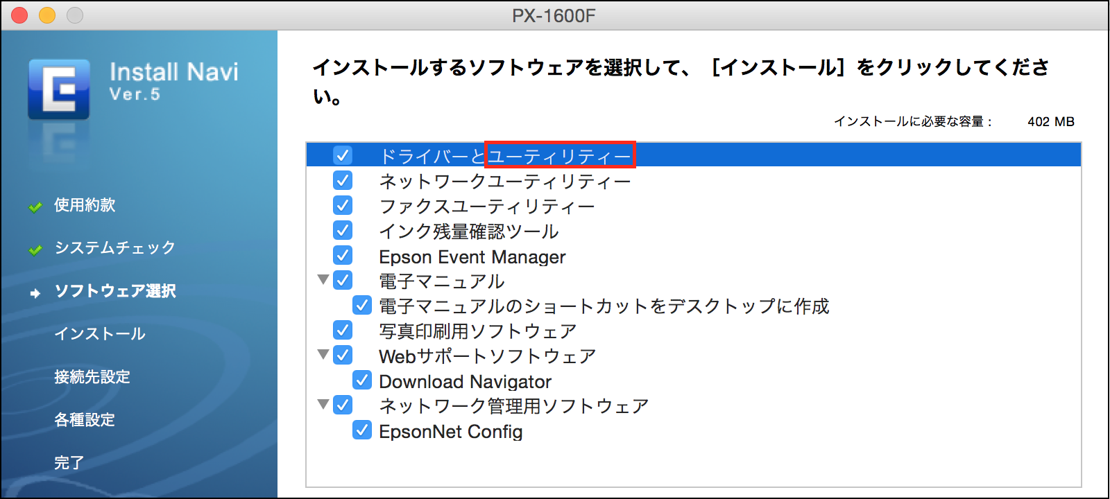 私の環境は、OS X Yosemite(10.10.5)の EPSON PX-1600F です。