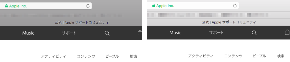 はい、当方でも「公式|Apple サポートコミュニティ」という文字列が見辛くなっています。