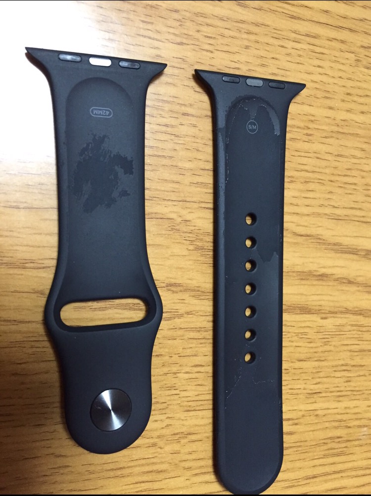 ユーザのユーザプロフィール: T22T T22T ユーザレベル: レベル 8 38,091 ポイント 2015/10/04 20:27 kopoji への返信 以前にも同じような報告がありましたよ。 → スポーツバンドの劣化 | Apple サポートコミュニティ私も黒のスポーツバンドを半年くらい使っていますが、バンドの先端や留め具が入る穴の周辺が雲がかかったような状態です。 返信 リンク