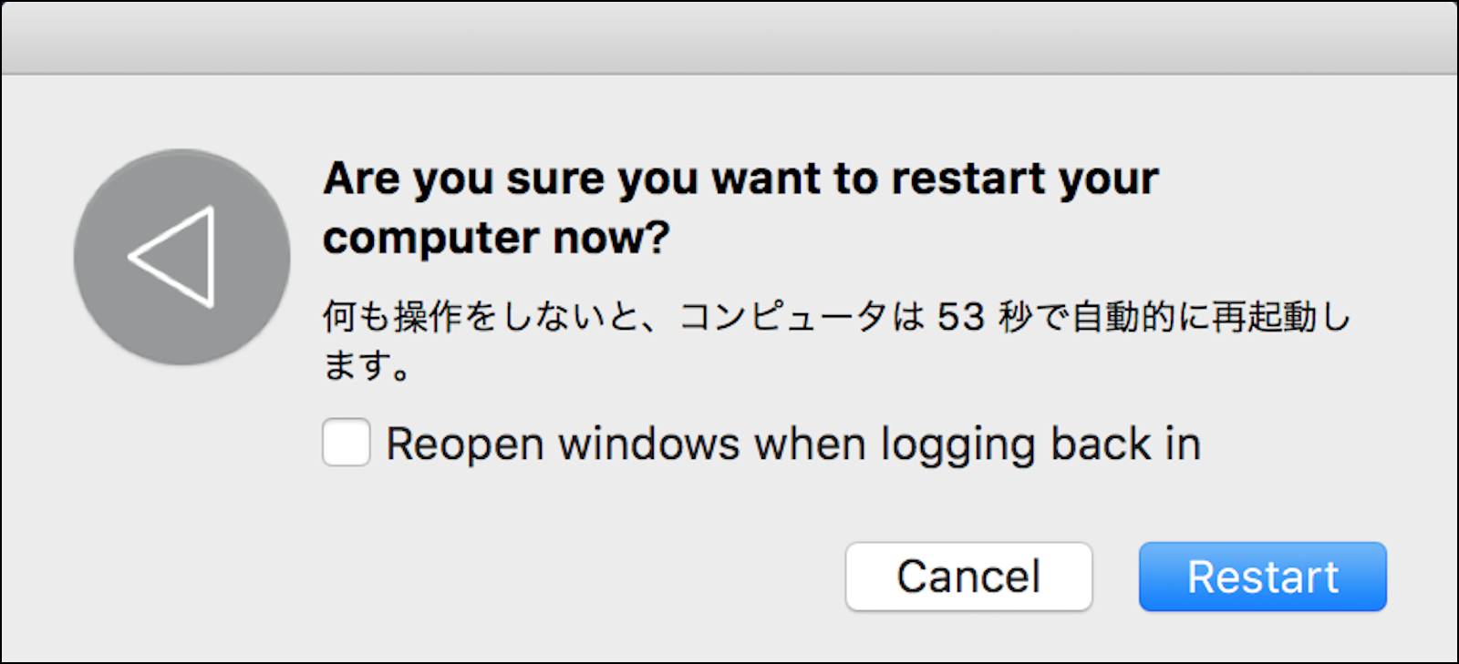 El Capitanにアップデートしたら、システムのメッセージの一部が英語になりました