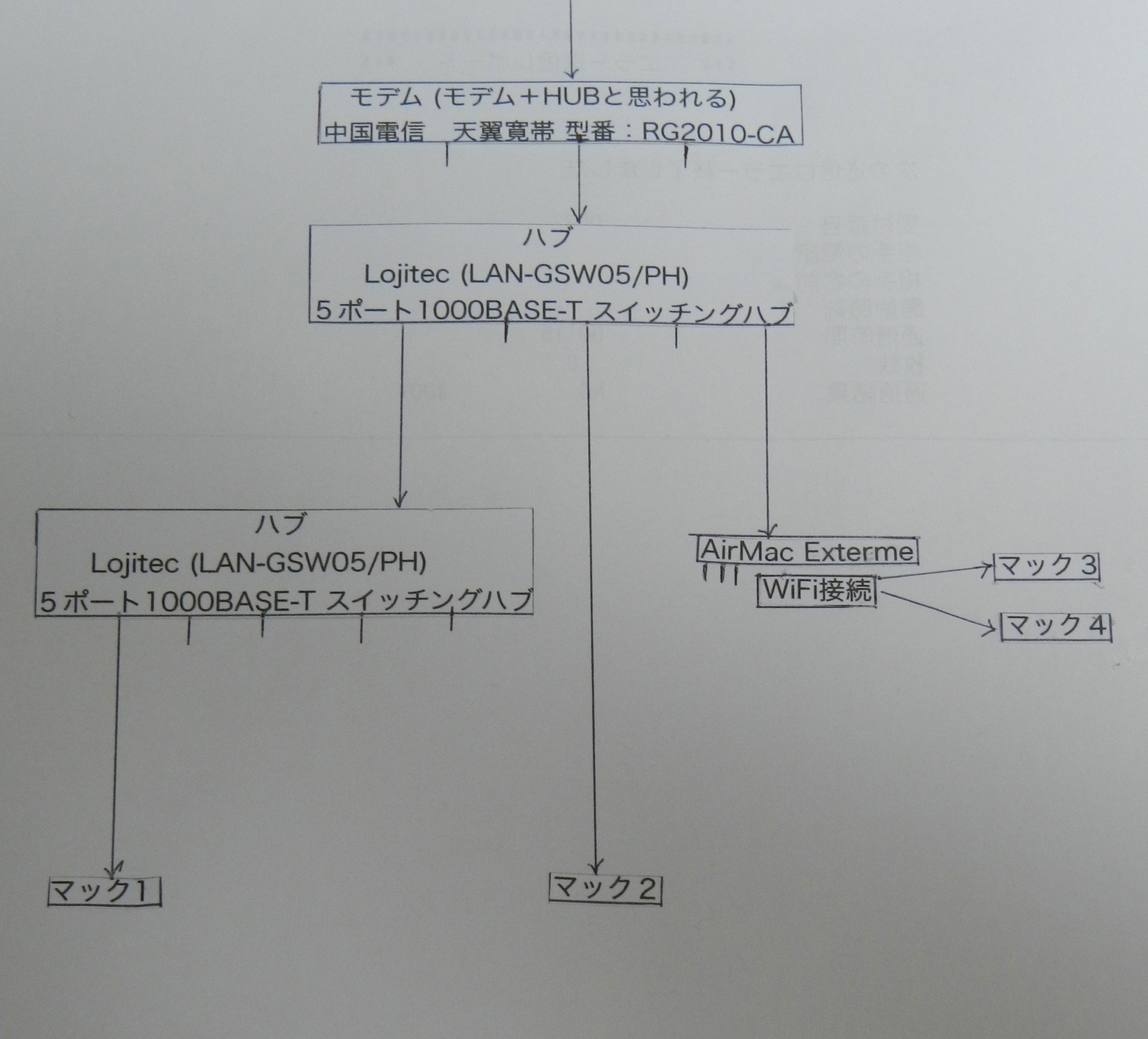 接続3:上記3,4:AirMac ExtremeでWiFi接続に接続しています。