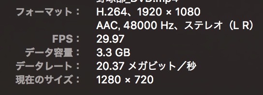 QuickTimePlayerのインスペクタでは、両ファイルとも、H264,AACですが、細かいフォーマットが異なっているのでしょうか?