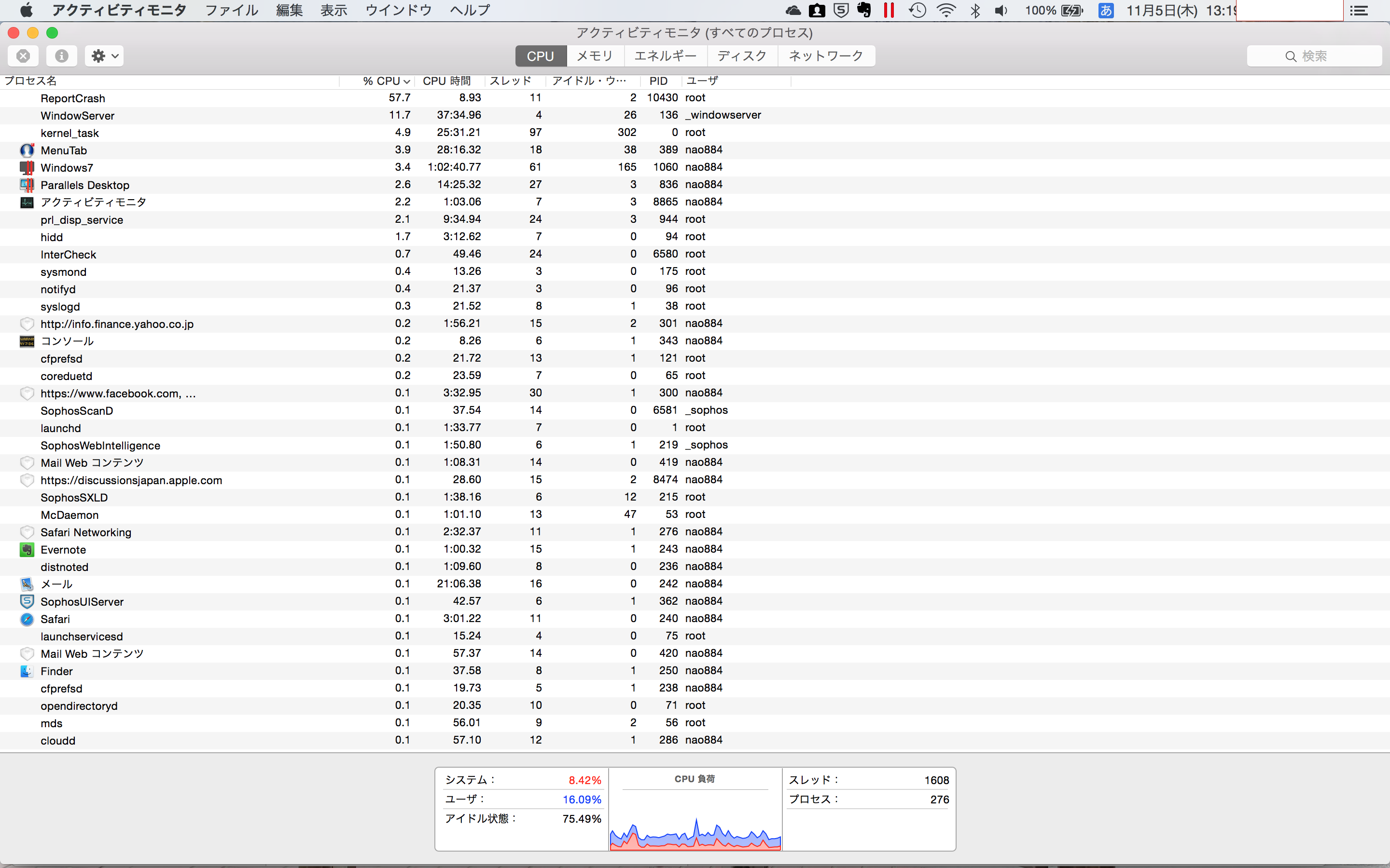 いつからかは分かりませんが、プリンターを設定するとCPUの稼働率が上がり、アクティビティーモニターで5秒間隔でReportCrashが表示されます。
