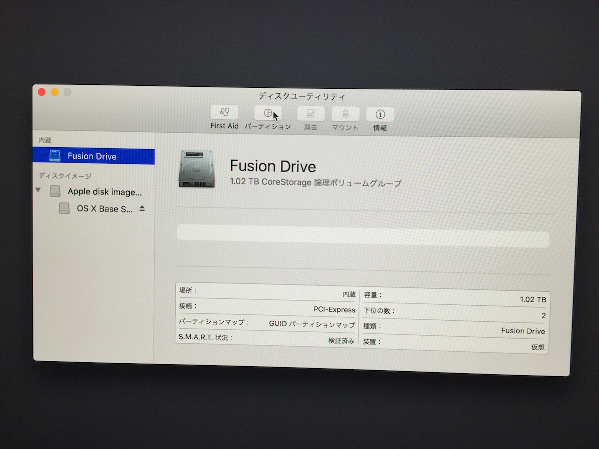とすれば、現在のディスクの状態がわかると思います。fusion driveは論理ドライブなので、