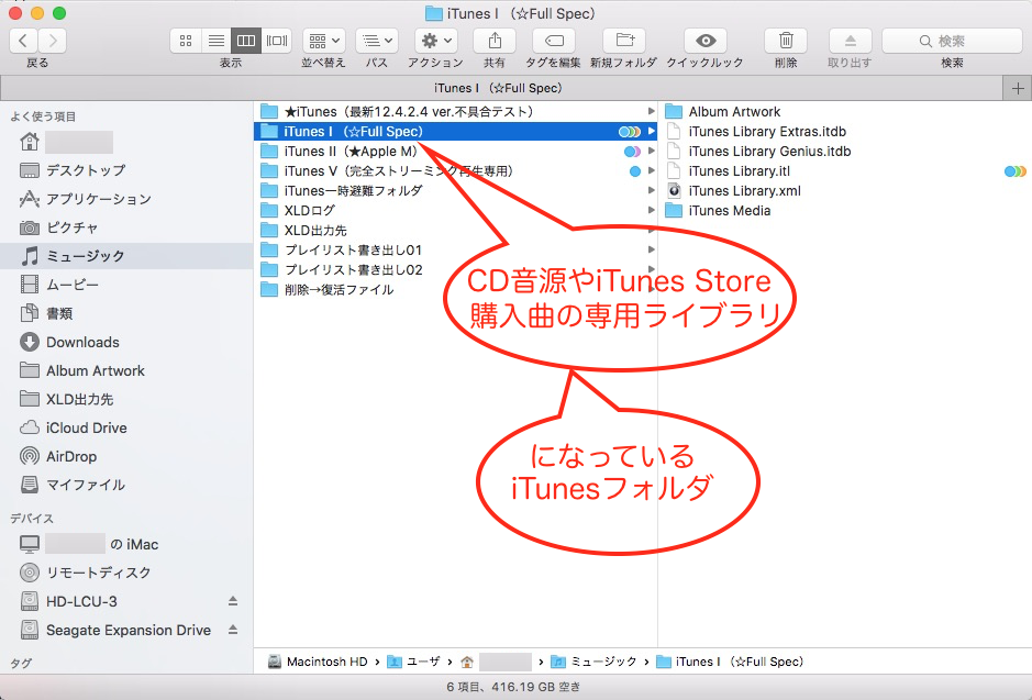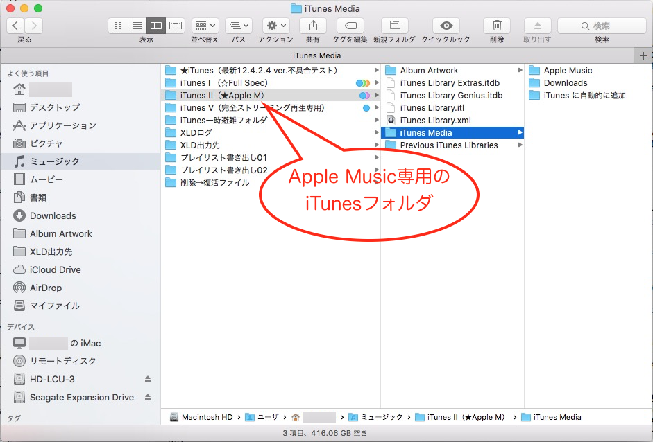 ※ 私の場合は…「iTunes Ⅱ(★Apple M)」フォルダが「Apple Music専用(ライブラリ)」になります…ね。