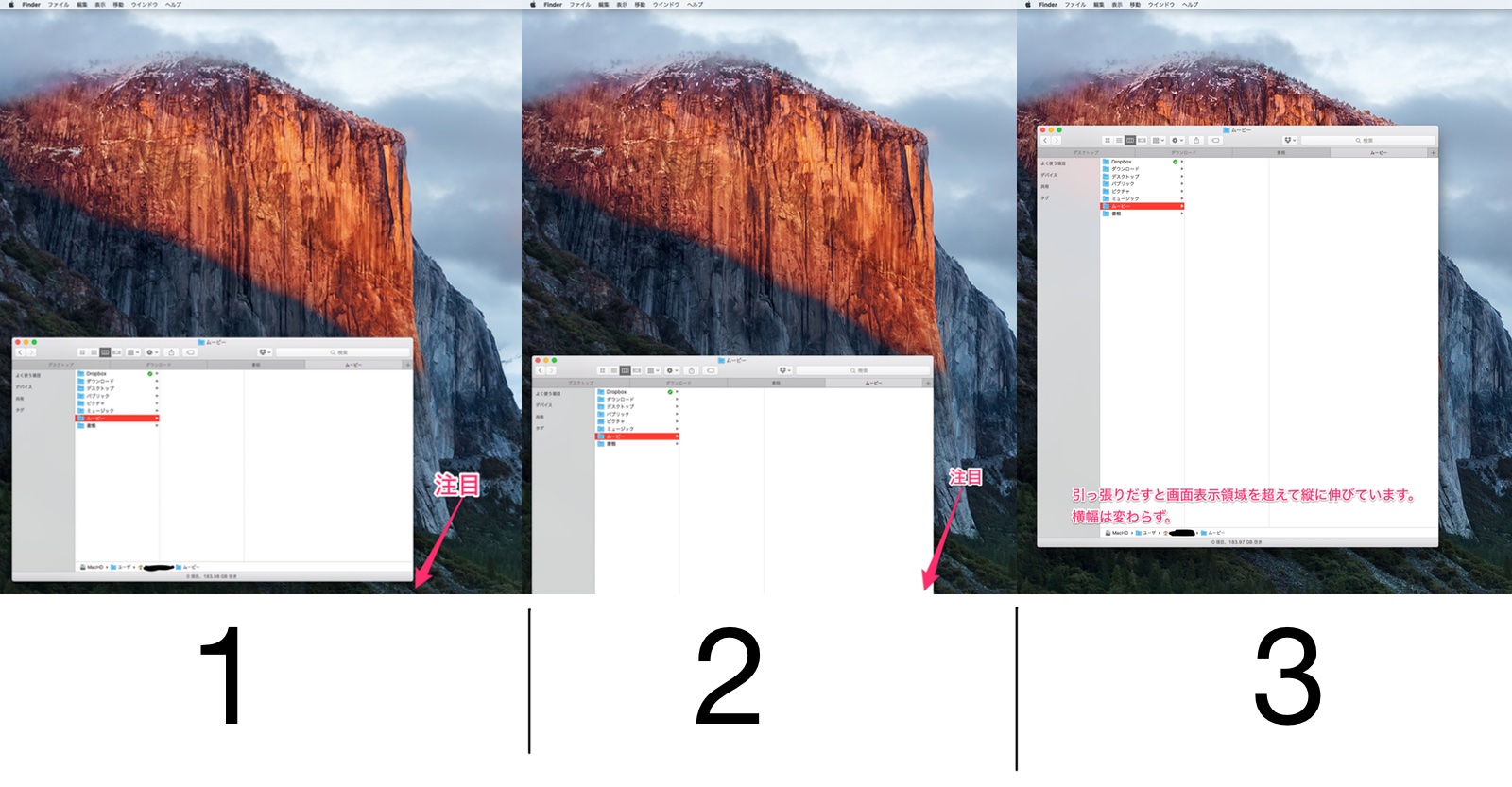 Finderが勝手に縦に伸びる