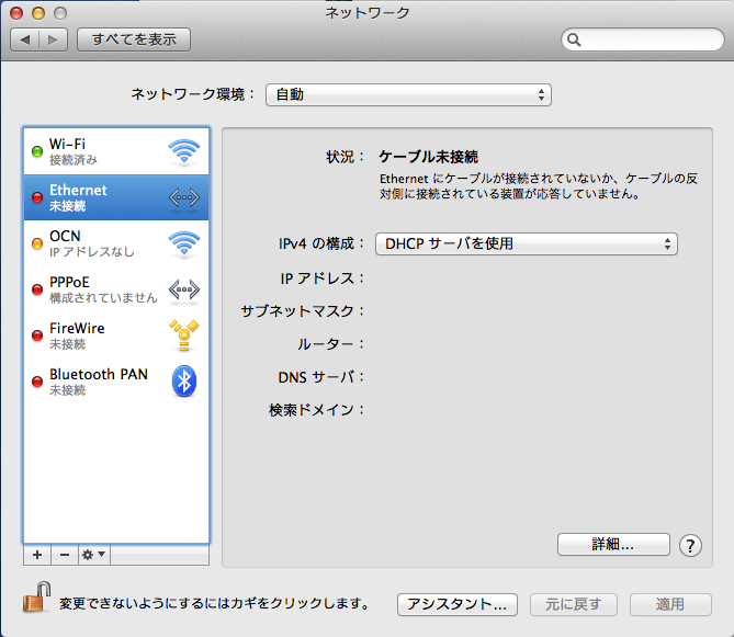 何の問題もなくEthernetもWi-Fiも使えていたのに、突然Ethernetが未接続となり、ケーブルもルーターも確認しましたが 応答していない と表示されてしまいます。