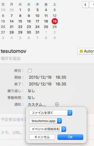 Automatorで指定日時にムービーを再生したい