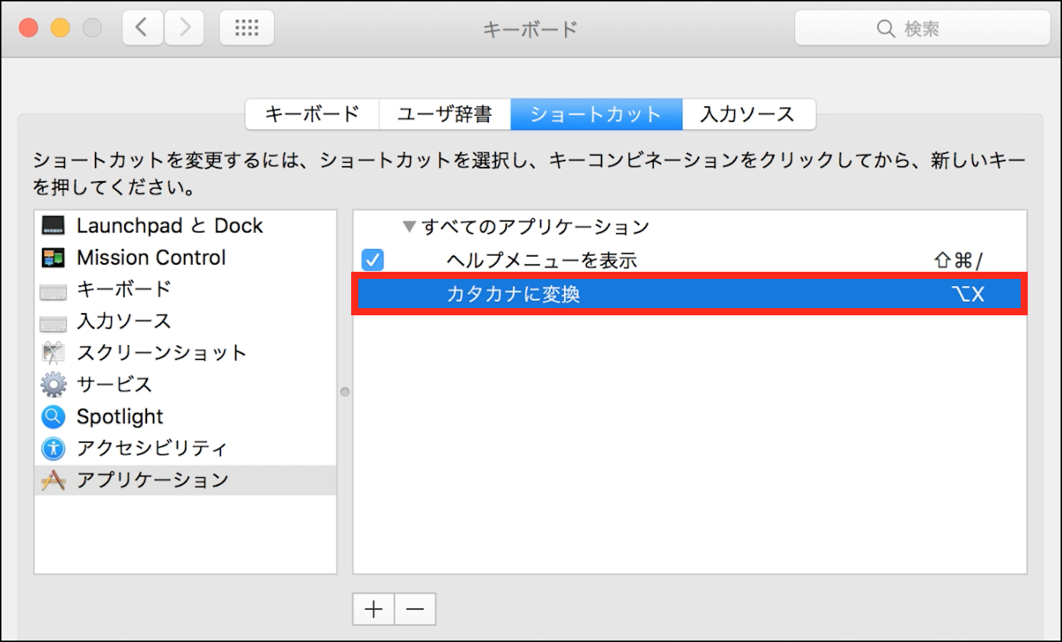 Yosemiteでカタカナ変換のショートカットキーを設定できるか