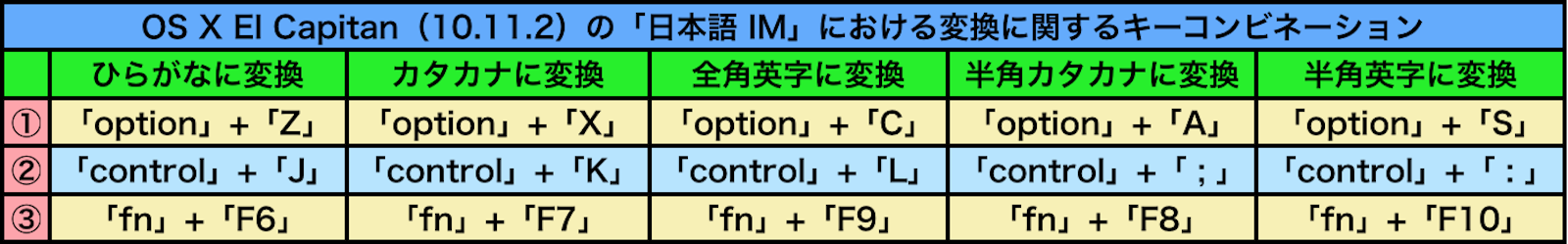 ちなみに、OS X El Capitan(10.11.x)で搭載された「日本語 IM」の「ライブ変換」は優秀で、今では「カタカナ変換」