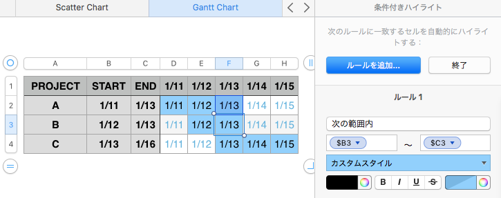 Numbersでガントチャート