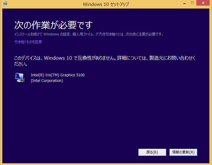 調べているとwindows10用のドライバもあるみたいなので、intel Iris Graphics 5100自体はwindows10で使えないわけではなさそうです。