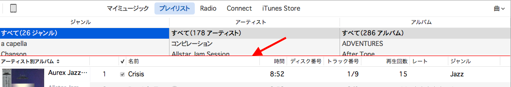 iTunes 12 for WIndowsでカラムブラウザーの高さが小さくて見にくいので、広げたい。