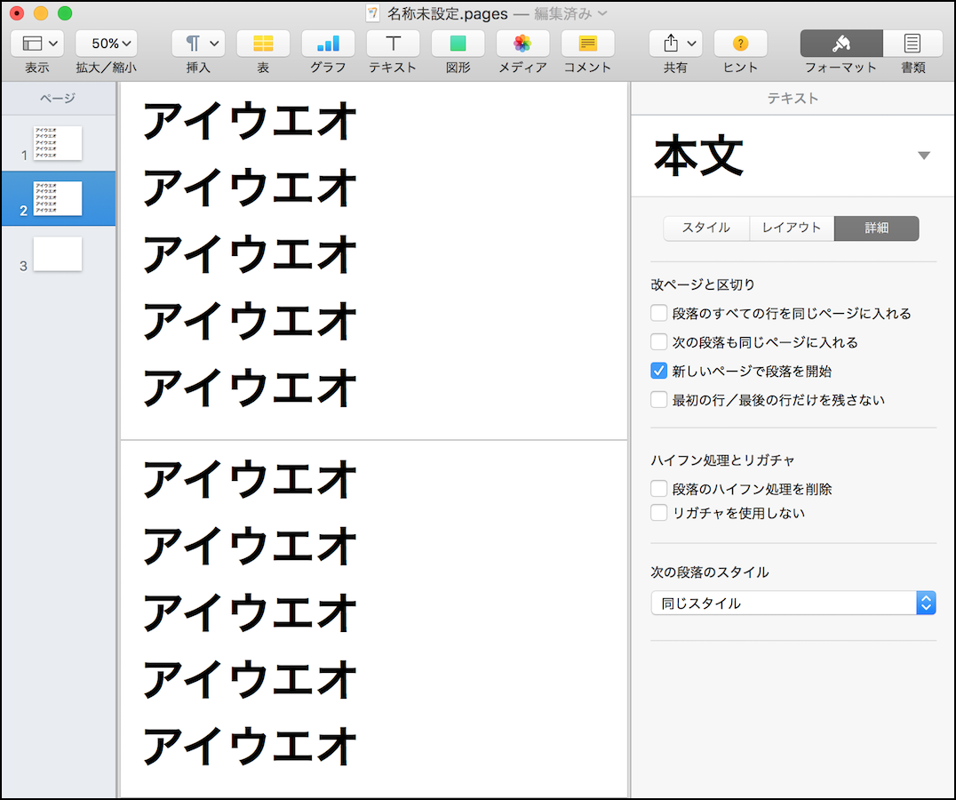 pagesで横のページで,二段落でテキスト入力をしていると,通常左下から右上に文章が繋がります.