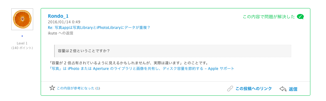 iPhotoの写真を、写真Appに移行しても同じ写真が、iPhoto Libraryと、写真Libraryの2箇所にあるわけではないそうです。