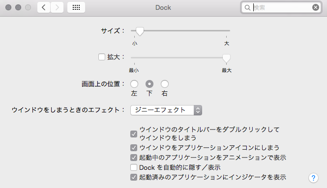 カーソルを下部に移動させるとDOCKがそちらに出現。