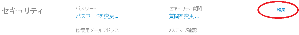 「2.「セキュリティ」セクションで「編集」をクリックします。場合によっては、1 つ以上のセキュリティ質問に答えてからでないと、先に進めません。」